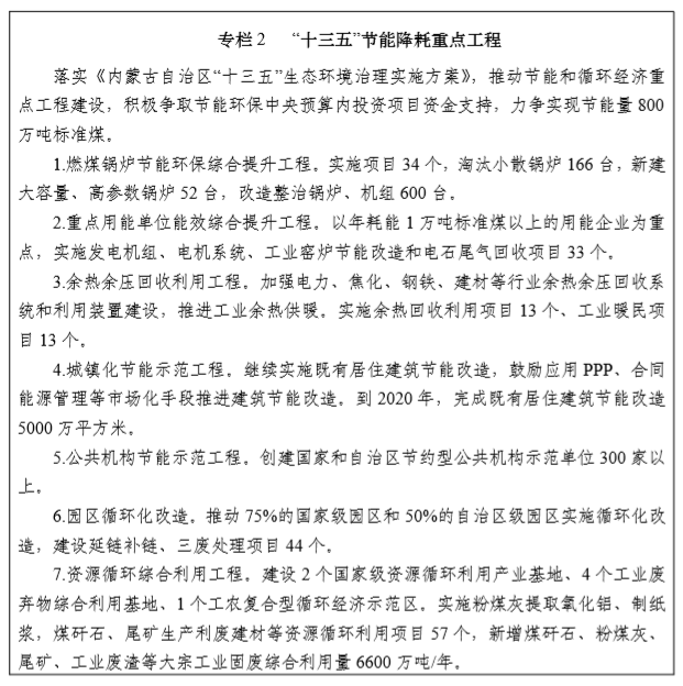 以完成约束性指标为导向,坚持高起点控制增量与高标准改造存量相结合,推进结构性、工程性节能降耗,围绕工业、建筑、交通、商贸、公共机构等重点耗能领域,加快实施重点节能工程,切实提高重点领域能源利用效率。通过上述措施预期实现“十三五”节能任务的113%左右,确保完成国家下达的目标任务。