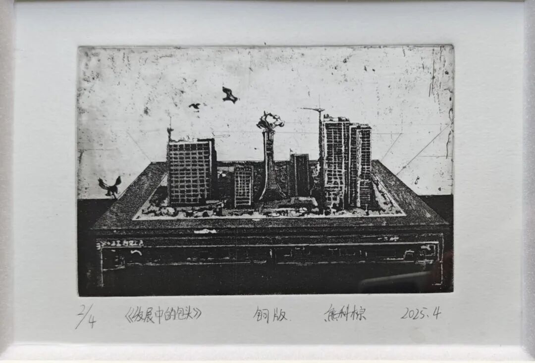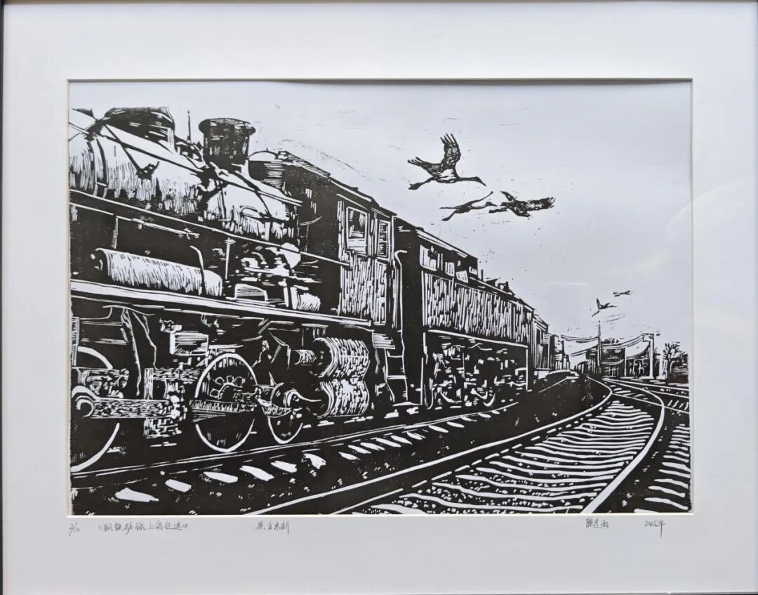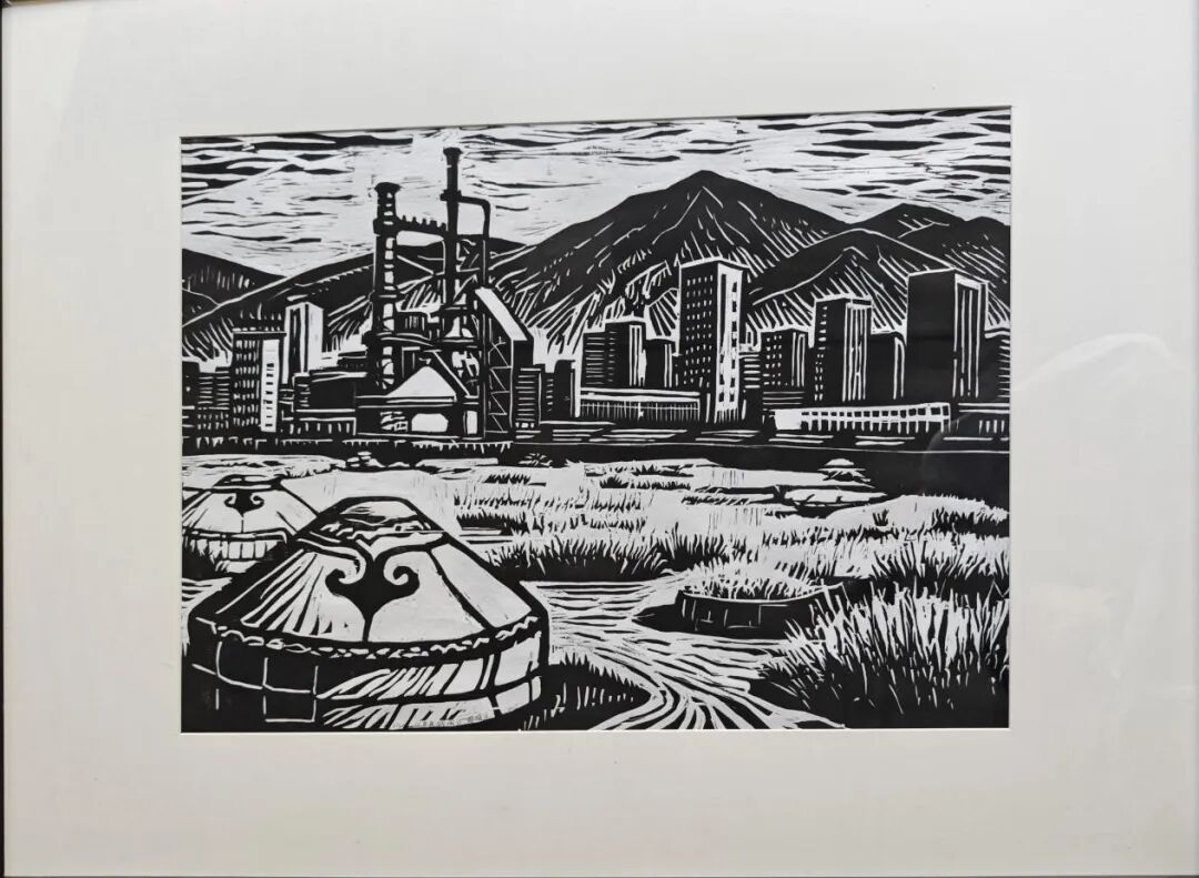 本次展览汇聚了内蒙古科技大学美术学系学生精心创作的40余幅版画作品,以艺术为笔,以文化为墨,多角度勾勒北疆文化的独特风貌,是一次校地合作的积极探索。本次展览展出的每一幅作品都是学子对北疆文化的深刻感悟与创新表达,承载着他们对这片土地的热爱与思考,不仅是对艺术技法的锤炼,更是情感的投射与精神的扎根。学子们将课堂所学扎根于北疆沃土,把对故土的深情、对文化的敬畏,凝结为黑白交织的意象、色彩流淌的情感。他们以年轻而真诚的艺术视角,诠释着“何谓北疆”。