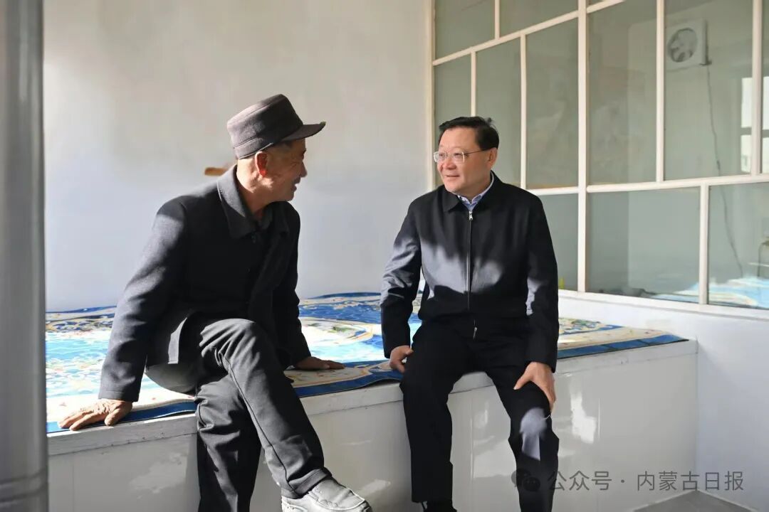 11月30日,自治区党委书记王伟中来到土默特右旗双龙镇路三圪堆村,与受灾群众深入交流,详细了解之前房屋受损程度、维修重建过程、生产生活情况。草原云·内蒙古新闻网记者 马建兵 摄