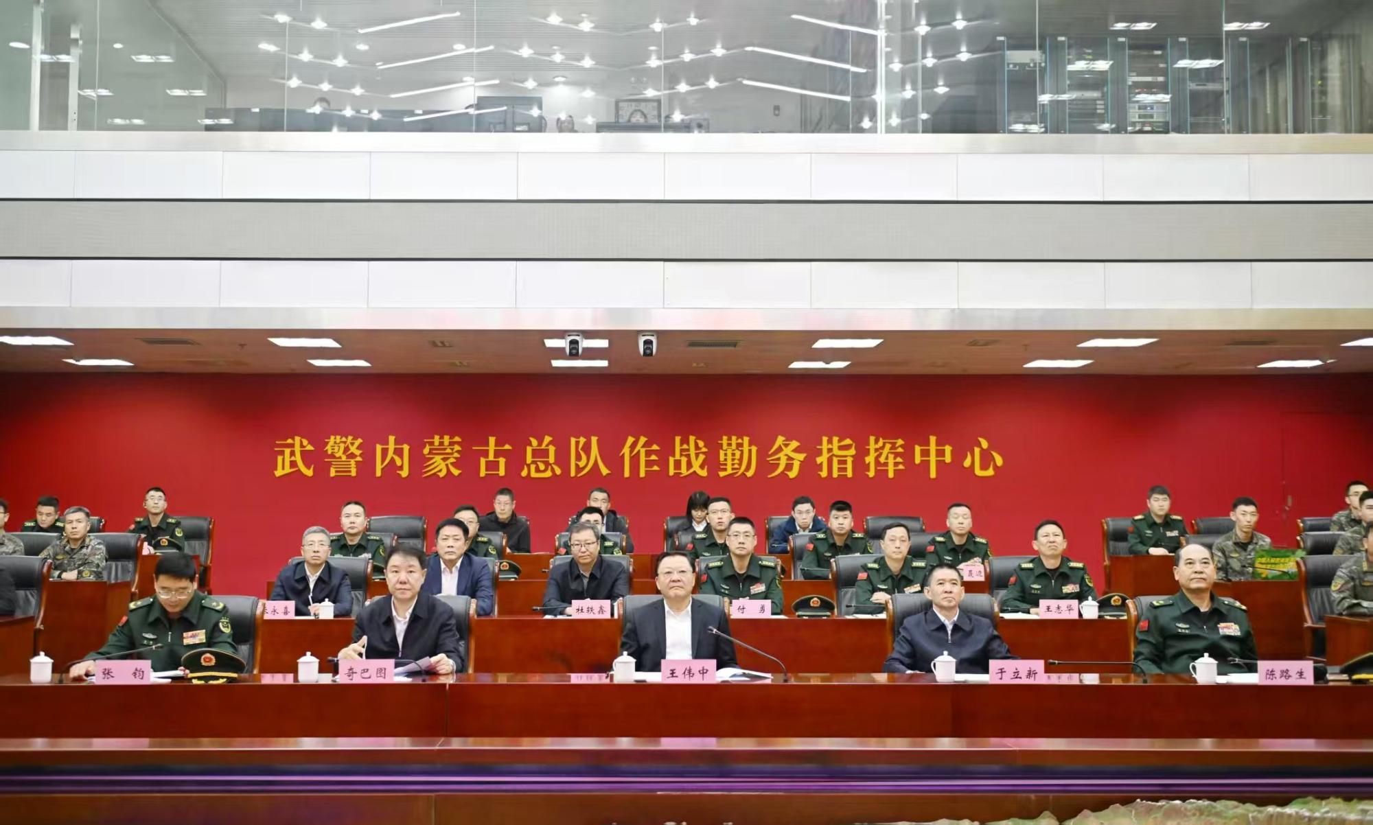 在武警内蒙古总队,王伟中来到作战勤务指挥中心,仔细听取部队建设和指挥中心运行情况介绍。他指出,武警内蒙古总队是一支有着光荣历史的英雄部队,希望部队继续关心支持自治区经济社会发展,加强练兵备战,做好应急准备,当好内蒙古高质量发展和长治久安的坚强基石、忠诚卫士,为全区社会大局稳定和人民群众安居乐业保驾护航。