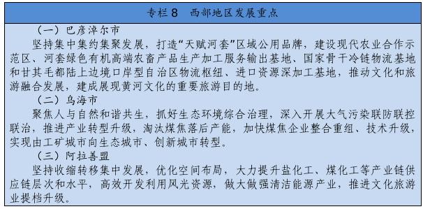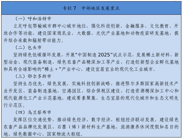 经济发展基础更加稳固。地区生产总值年均增长4.3%,人均地区生产总值突破1万美元,常住人口城镇化率达到64.1%。能源和战略资源基地得到提升,煤炭产能、外运量、发电量和外送电量均居全国首位,可再生能源装机占比达到36.1%,稀土原材料就地转化率达到75%,稀土功能材料及终端应用产品占比达到53.6%。农畜产品生产基地更加巩固,粮食和畜牧生产连丰连稳,农畜产品加工转化率达到65%,形成2个千亿级、9个百亿级农牧业主导产业。数字经济、会展经济、商贸物流、现代金融等加快发展。
