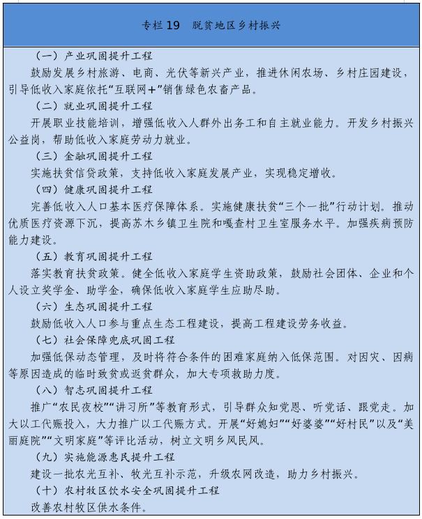 ——民生福祉达到更高水平。城乡居民收入增长和经济增长基本同步,分配结构明显改善,统筹城乡的基本公共服务实施标准进一步完善,基本公共服务更加优质均衡,就业更加充分更有质量,教育现代化水平明显提升,社会保障、养老服务、卫生健康体系更加健全完善,脱贫攻坚成果巩固拓展,乡村振兴战略全面推进,人民对美好生活的向往得到更好满足。