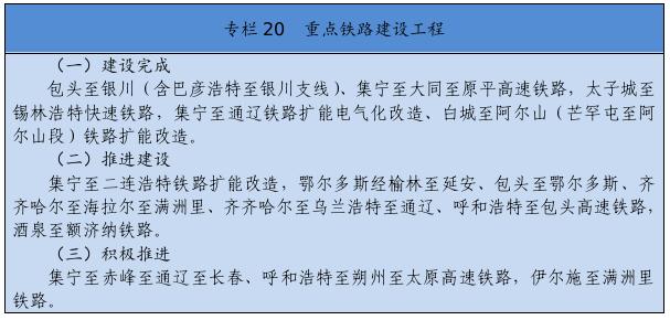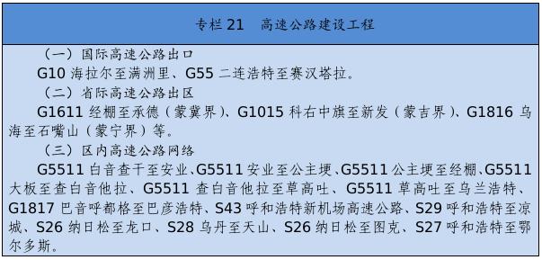 基础设施保障更加有力。交通运输、能源外送通道和引调水骨干工程接续落地。综合交通运输体系基本形成,接入全国高铁网,呼和浩特至张家口高速铁路,通辽、赤峰至京沈高速铁路连接线,浩勒报吉至吉安铁路顺利建成,建成高速铁路404公里。全区103个旗县(市区)全部通高等级公路,京新高速临河至哈密、丹锡高速锡林浩特至巴林右旗等高速公路通车运营,所有乡镇(苏木)和具备条件的建制村通硬化路,建成“四好农村路”6.6万公里,综合交通网总里程达到22.5万公里。呼和浩特新机场开工建设,呼伦贝尔、包头、通辽等机场完成改扩建。新建通用机场15个,民用机场达到40个。黄河内蒙古段二期防洪、引绰济辽、东台子水库等重大水利工程建设顺利推进。全区5G基站突破1万个。建成5条特高压外送电通道。克什克腾至北京煤制气管道投入运营。呼和浩特地铁1、2号线一期工程建成运营。