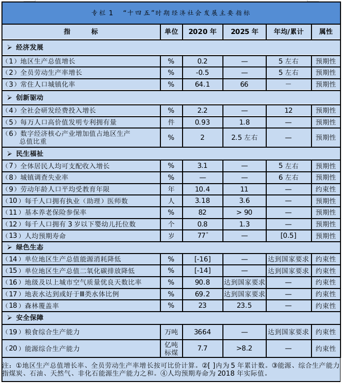 第二节 “十四五”时期经济社会发展主要目标